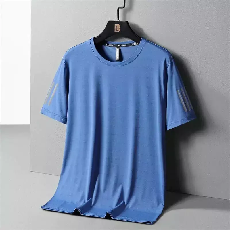 Camiseta Esportiva De Seda Gelada Estampada – Slim Fit, Estilo Esportivo Verão Essencial